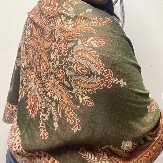 Olive Paisley Multicolored Pashmina Scarf (with gift box)
