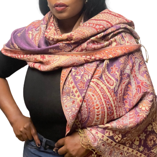 Purple Paisley Multicolored Pashmina Scarf (with gift box)