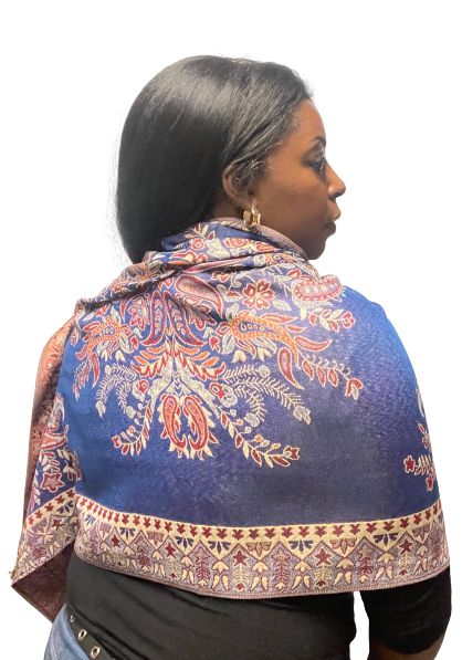 Blue Paisley Multicolored Pashmina Scarf (with gift box)