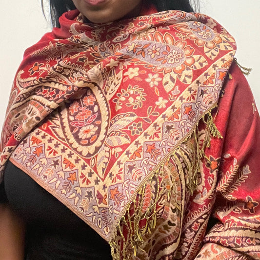 Wine Paisley Multicolored Pashmina Scarf (with gift box)