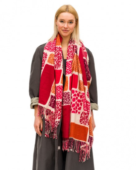 Abstract Fuchsia Pink and Red Plaid Fringe Scarf