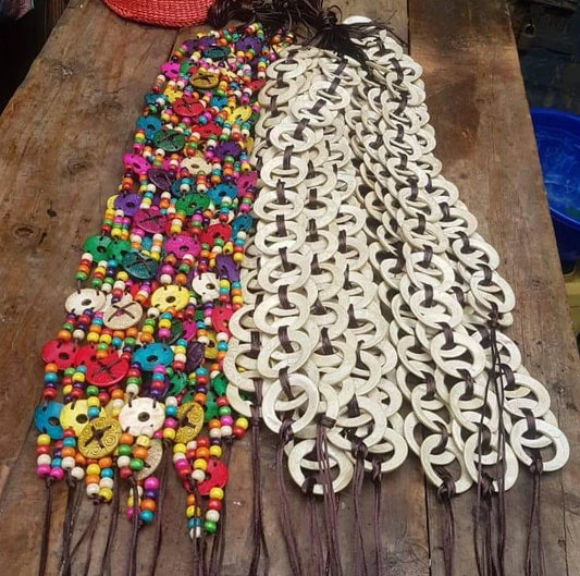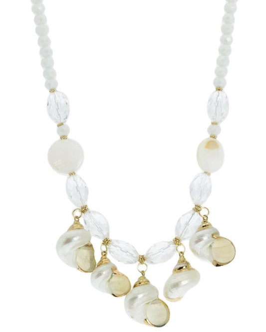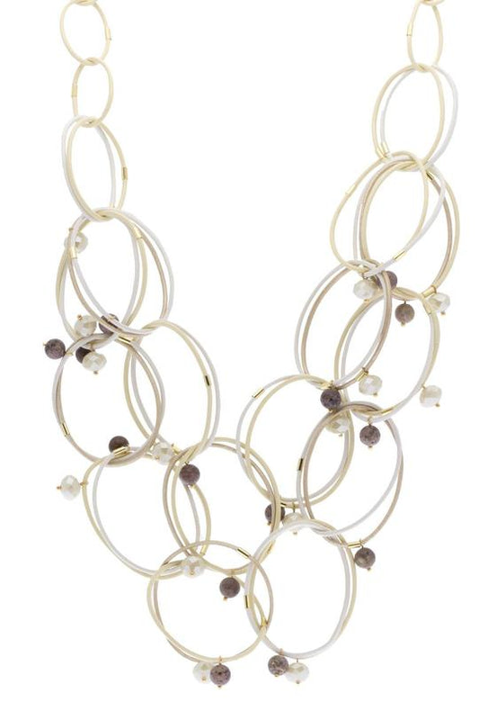 Bead Stone and Brass Ivory Hoop Drop Necklace