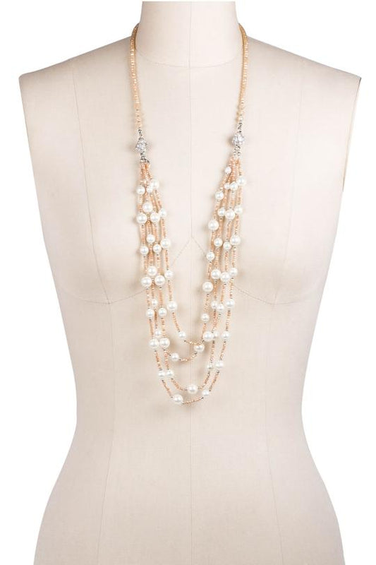 Convertible Pearl and Sparkle Layered Necklace - Rose Goldtone