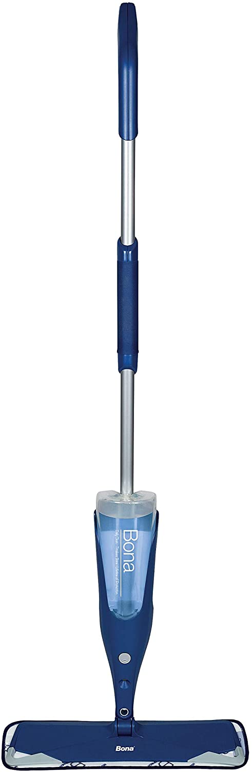 The next-generation Bona Premium Spray Mop for Hardwood Floors is an all-in-one solution to clean and reveal the natural shine of your floors. Includes Bona's waterbased residue-free cleaner in a refillable cartridge and a washable microfiber pad. The original formula cleans hardwood floors effectively by removing dust, dirt and grime revealing beautiful floors. The extra-large mop head delivers quick and effective cleaning, and the flexible rubber corners protect baseboards and furniture from dings and scratches. A secondary grip allows for added cleaning power, and a retractable hook makes storage easy.