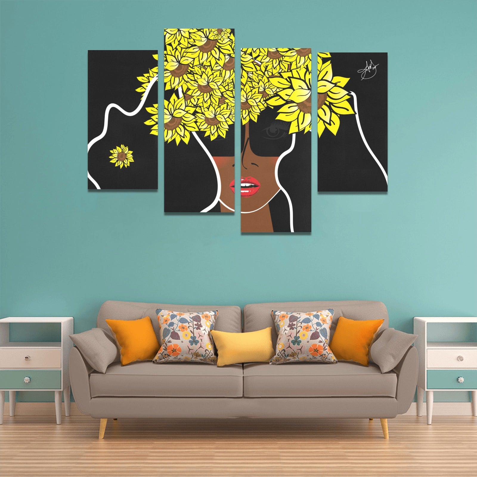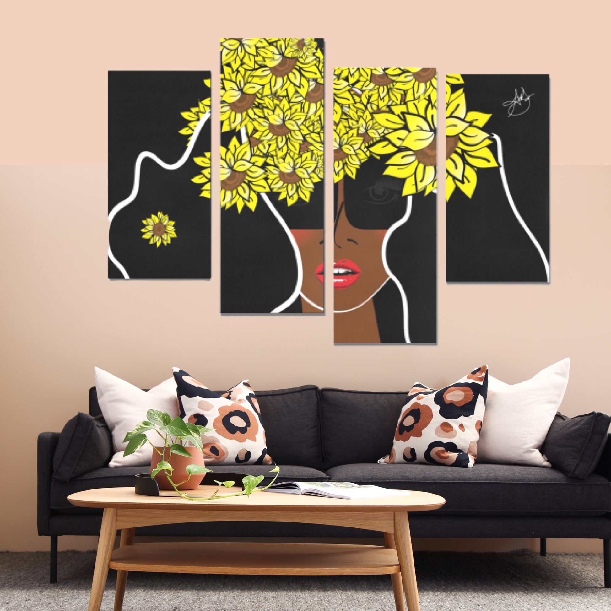 AMMA JO Cocoa Sunflower 4 Piece Wall Art Canvas Wall Art Y (4 pieces)