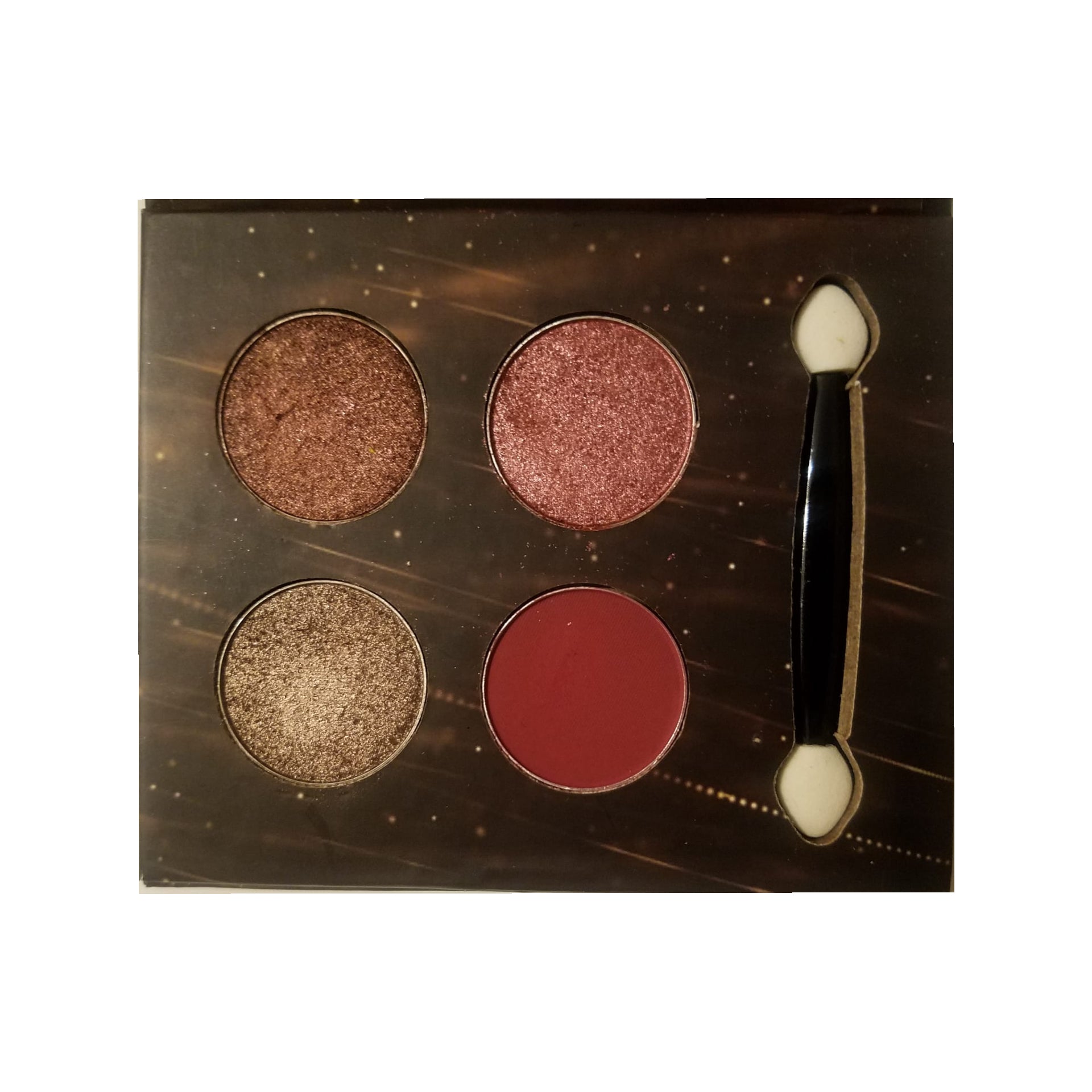 Create a fun look with hints of gold rose and wine with our new shimmering rosé eyeshadow quad!